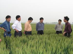 田小麦的长势.场长韩大鸣、副场长李现金向专家