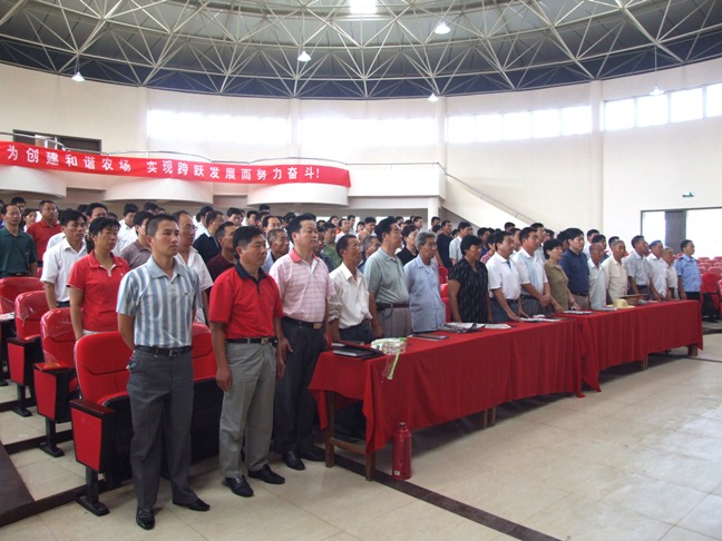 在热烈的掌声中,党委书记、场长杨俊宇做了重要发表讲话。讲话中他回顾了党的87年光辉历程,歌颂了党的卓著功绩。指出:农场全体党员要牢记发展是兴场富民的第一要务,紧紧抓住发展不放松,继续加快发展速度,提高发展质量。我们要紧紧围绕场党代会和今年职代会制定的发展思路和奋斗目标,按照集团公司“三化”、“三增”要求,以十七大精神和“三个代表”重要思想为指针,以发展现代农业和全面建设小康社会为目标,坚持以人为本,树立和落实全面、协调、可持续的发展观。进一步解放思想,深化改革,抓住机遇,乘势而上,把加大结构调整力度同培育新的经济增长点结合起来,把发挥科技进步作用和充分发挥人力资源优势结合起来,把企业增效和职工增收结合起来,把经济发展和社会进步结合起来,努力走出一条经济繁荣、生活富裕、和谐稳定的新路子。全场各级党组织要紧紧围绕富民强场和构建新型农场社会开展工作,从政治、思想、组织和作风上全面加强党的建设,充分发挥党组织的政治核心作用和党员的先锋模范作用,促进农场三个文明建设,为农场经济社会发展提供强大思想保障和精神动力。